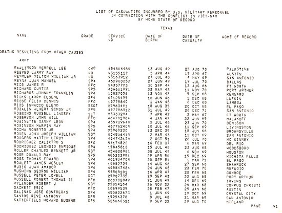 Casualty List, Vietnam Conflict