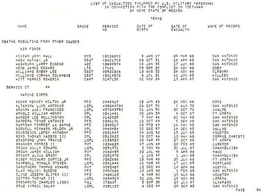 Casualty List, Vietnam Conflict